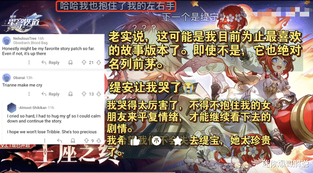 完整过完剧情的玩家,都在网上发表自己的感悟,无一不在崩铁制作组传递出来的内核而感动。而且不局限于国内的玩家,不少老外都被感动哭了。